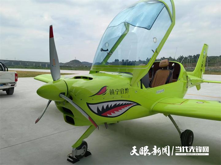 7月13日,在安顺市镇宁自治县新落成的飞行训练营地中,一架崭新的绿色"阿若拉"固定翼飞机静静地停放在机库旁。这架飞机刚刚完成了从贵阳市白云区往返的试飞任务。