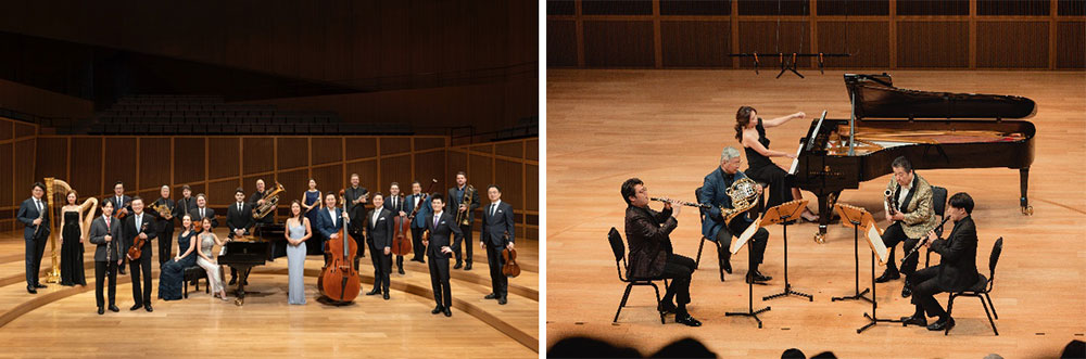 图注:天津茱莉亚学院常驻教师合照(左);天津茱莉亚室内乐团(右)